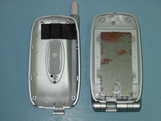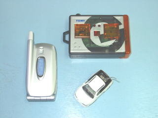 | このコーナーは自分で作成しておきながら、 本当にバカなコーナーだと思います。 携帯電話のモックアップ(展示用見本模型)に、 トミーの「ビットチャージー」を組み込み 走るようにしただけです。 作成要領を載せましたので お時間のある方はご覧ください。 なお、本物の携帯電話で同じことをやると 電話の機能が失われる だけではなく、危険なので絶対行わないでください。 刃物等で怪我のないよう、各自の責任で行ってください。 |