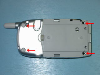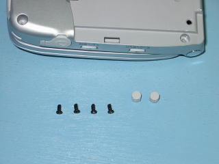 | ビスは4本です | ウエイトは両面テープで 付いていますので バッテリーカバーと 同じ要領で外します。 ウエイトを外したら 液晶部をビスで取り付けます。 |