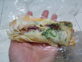 4種類入っていて¥1050 「お好み焼き」と「ちじみ」を 合わせたような感じのものです ソース味としょうゆ味があり それぞれに “ねぎ入り”と“ねぎなし”がありました ばら売りもあります |