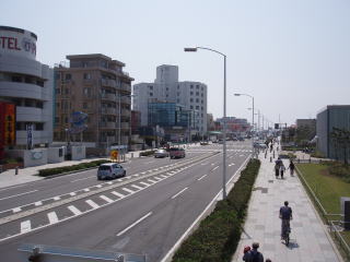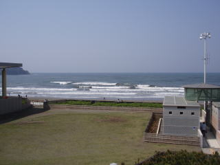 駅を出て、海岸の方へ歩いていくと 5分位で海に出ました 写真では分かりづらいですが サーフィンを楽しんでいる方が たくさんいました |