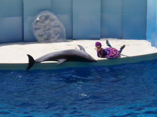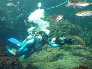 そんな方にもよく分かるように ダイバーが水中カメラを持って潜り テレビ画面に映っている魚を お姉さんが解説してくれるという うれしいコーナーもあります |