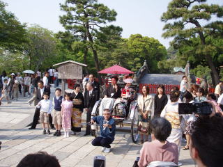 結婚式をやっていたみたいで 人力車に乗る新郎新婦を見てパチリ 私を含め、関係ない人がバチバチ 写真を撮っていました |