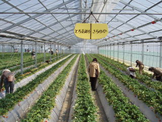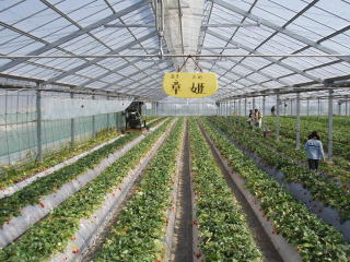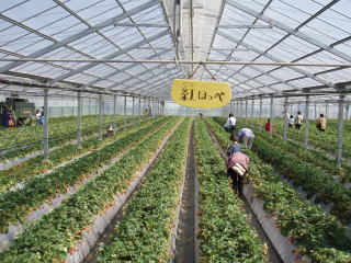 受付を済ませると いちご狩りのビニールハウスに 案内されます |