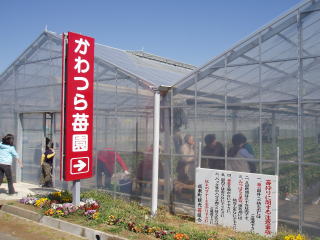 スタンドの反対側あたりに いちご狩りの看板がありますので 右折します 山武成東ICから、15分程度です |