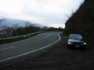 「えー、いつもの 山坂道に車をもってきました」 でも、私たちは車について 解説するほど偉くないので ノーコメント!! |