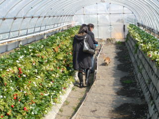 久能山のいちご狩りにやってきました 丸進農園さんです 犬もOKな農園でミルクも嬉しそう♪ |