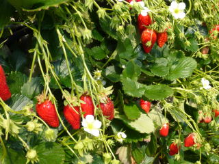 美味しそうな いちごが沢山なっています どこから食べようかな? |