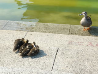カルガモの親子がいました♪ どんな動物も子供はカワイイですね |