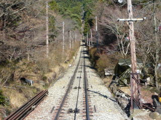 下りのケーブルカーとすれ違います |