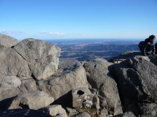 一等三角点の前で記念撮影 以前の筑波山の 標高(875.9m)です |
