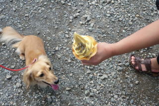 ソフトクリームとベーコンねぎま串です ミルクは いつものように待っているだけ(T_T) |