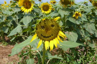 ちょっと離れた畑に行くと ひまわりが咲いていました♪ |