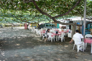 池の反対側に 休憩出来そうな処があるので そこでお昼ごはんを食べることに |