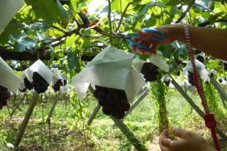 ピオーネを摘み取るため 畑の中へ・・・ |