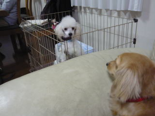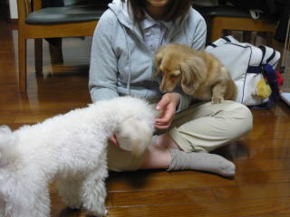 ミルクに寄っていく、らん太郎君・・・ 後ずさりするミルク(笑) |