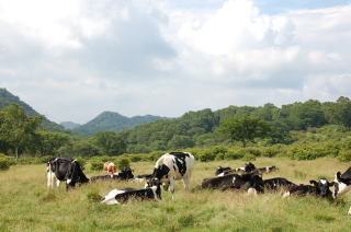 近くの牧場で牛をみて |