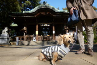 2012.2.4 ミルクも元気になって いつもの生活に戻りました お散歩の途中にお参りです |