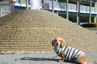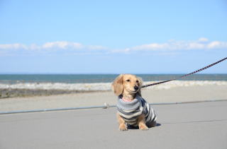 ミルクも綺麗な海にご満悦♪ しかし、風が強くて寒いです (T_T) |