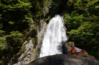2012.8.28 大柳川渓谷に遊びに来ました♪ かなり険しい遊歩道ですが ミルクは元気いっぱいです |