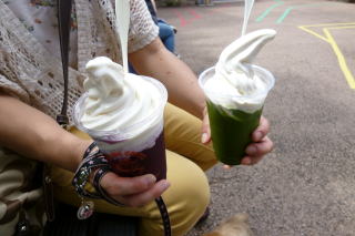 ブルーベリーフロートと 抹茶フロートです ミルクも一口食べてしまいました |