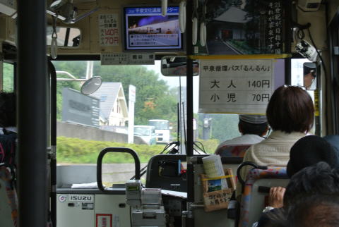 帰りはバスに乗って楽ちん♪ 中尊寺の駐車場に着くと同時に 凄い雨が降ってきました! 間一髪でセーフ 宿泊場所へ直行することに・・・ |