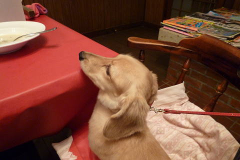 美味しい牛肉を たくさん食べてご満悦のミルク♪ |