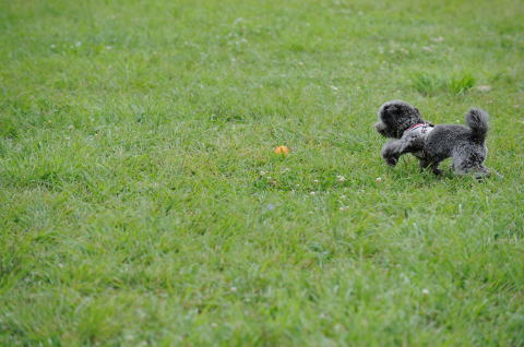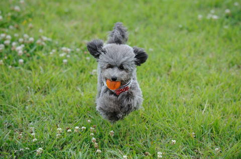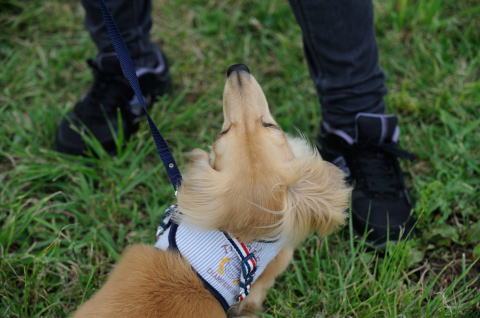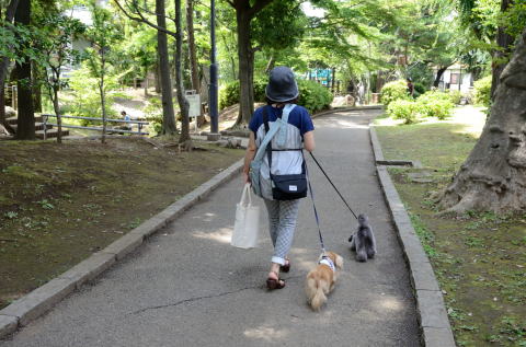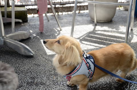 食後は近くの公園をお散歩 昨日でタルトは9か月になりました♪ |