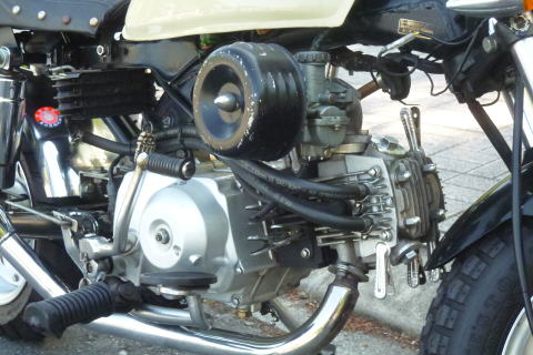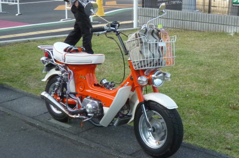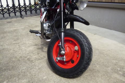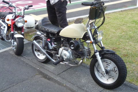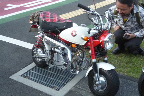 たかさんのモンキーを 見つめるS井さん 5インチのタイヤがカワイイですね エンジンも気になる! |