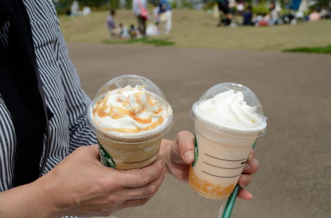 キャラメルフラペチーノと カンタロープメロン& クリームフラペチーノ |