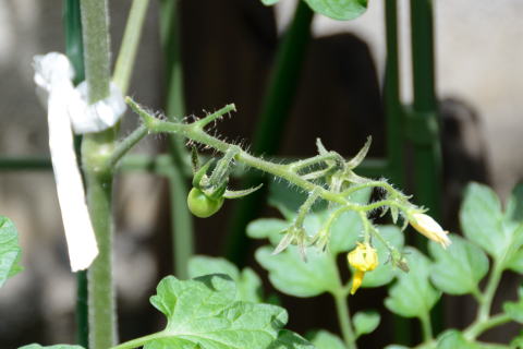 帰宅後にトマトを見ると 実が成りはじめていました 楽しみです♪ |