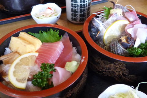 蓋を開けると・・・ 刺身の盛り合わせが! |