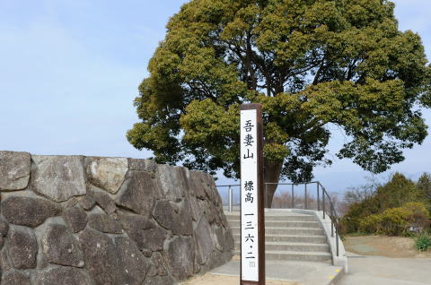 吾妻山の山頂 標高136.2mとのこと 晴れると思って来たのですが 高速を走っていると だんだん雲が多くなって・・・(´;ω;`) |
