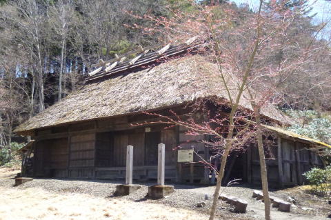 境内の南側に 藁ぶき屋根の古民家がありました |
