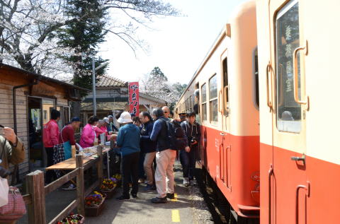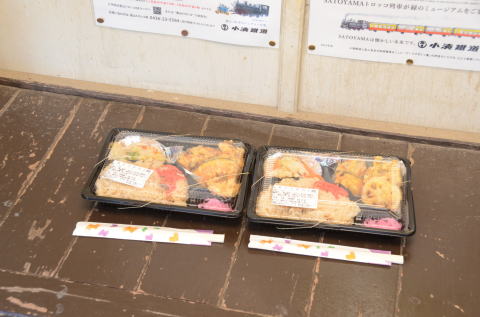 途中の里見駅ではホームで お弁当などを売っていました |