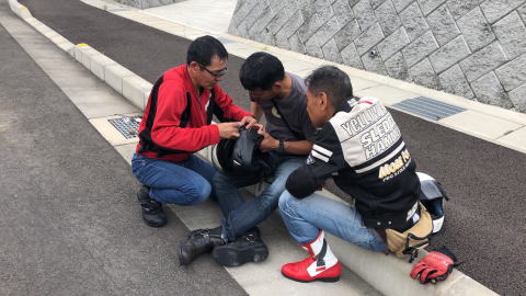 マシントラブルならぬ ヘルメットトラブルが発生しました 修理をして無事に復帰できました |