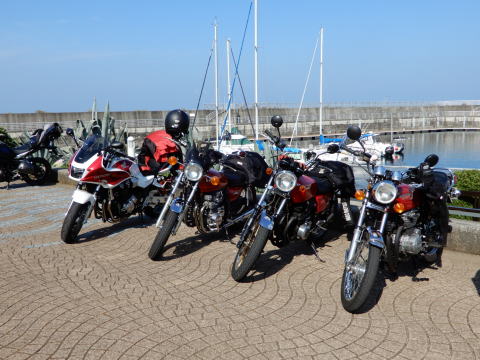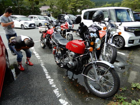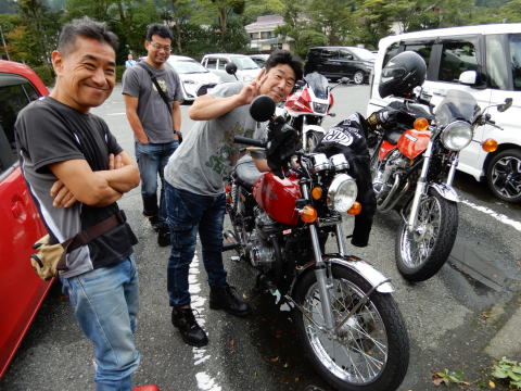 芦ノ湖畔で休憩中 今日は おーちゃんのヨンフォアも参加 レストアが終わったので お披露目ツーリングです♪ たかさんも興味津々 |