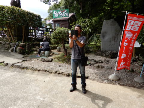 カメラを向けると 嬉しそうにポーズをとる人 |