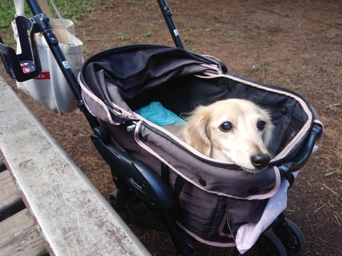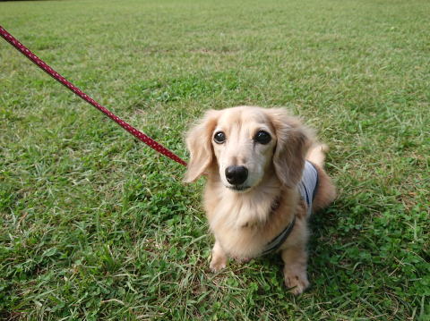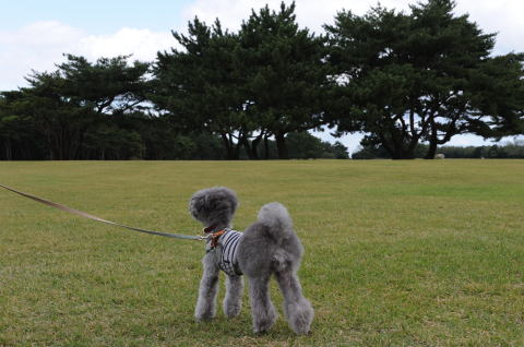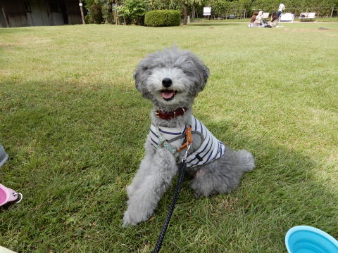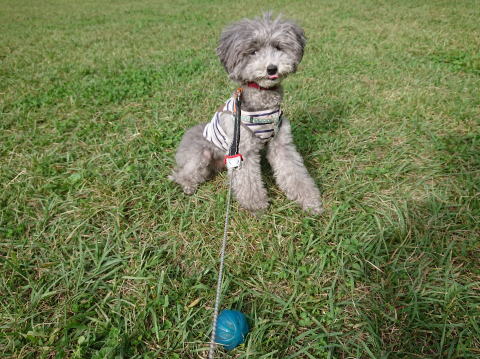 タルトは走り回りたいけど 伸びるリードも使えないので残念 |