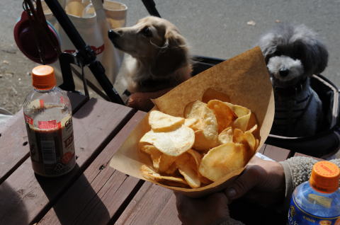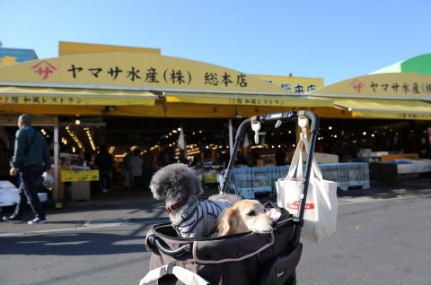 お魚を買って帰りました 久々のお出かけを楽しんだ わんこ達でした |