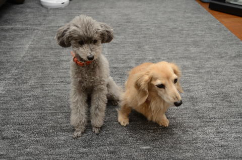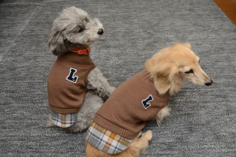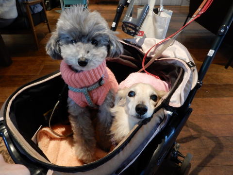 タルトと一緒にパチリ 視線を逸らすワンコたち |