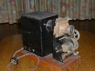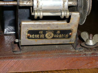 正面を見ると、プレートを発見! 「高級ハグルマ印 活動映写機械」と 書いてあります 高級です♪ |