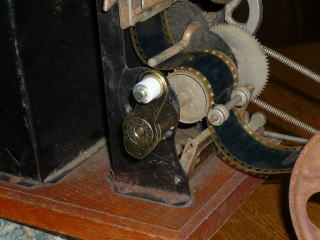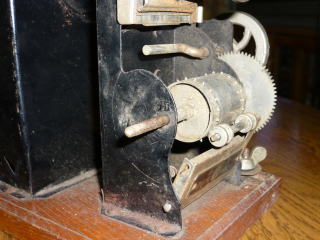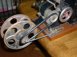 こちらは フィルムを送る部分です 残念ながら ハンドルを紛失してしまいました 昔はあったのですが 何処へしまったのか 覚えていません (T_T) |