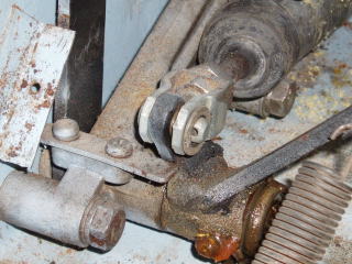 ロッドが外れた状態です この段階で ブレーキパイプのフレアナットを 少し緩めておきます その後、マスターシリンダを 固定しているボルトを外します |