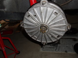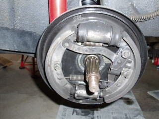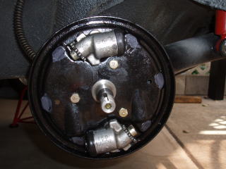 さて、次はフロントです ハブキャップを外して ロックワッシャーを起せば ナットを外すことができます ドラムがベアリングごと外れますので ベアリングを落とさないように注意して ください |
