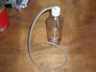 エア抜きをする時に使用している ペットボトルにホースをつけただけの 簡単なものです |