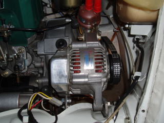 バッテリーの(−)端子を外してから オルタネーター(ダイナモ)を外します |
