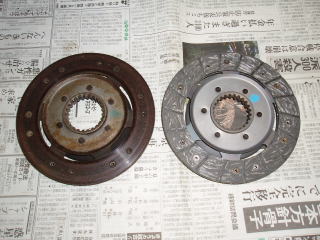 取り外したディスク(左)と 新しいディスク(右) 色の違いは、古いディスクが 変色している ためもありますが、新しいディスクとの 材質の違いによるものです |