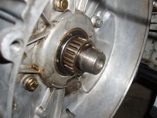 プライマリーピニオンのスプライン部も 綺麗に清掃します オイルシールを傷めるため クリーナーは使用しない方が 良いでしょう |