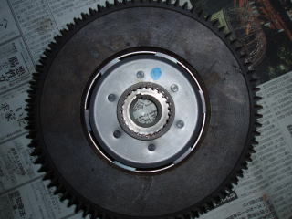 フライホイールも同様に ペーパーとクリーナーで綺麗にします |