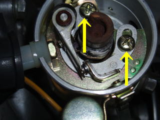 固定ボルトを締めると、若干点火時期が 動いてしまうので、再度点火時期を確認 しましょう 進角装置の付いているものは、BTDC13° 進角装置の付いていないものは、BTDC18° が標準です (数字が大きいほど早くなります) |